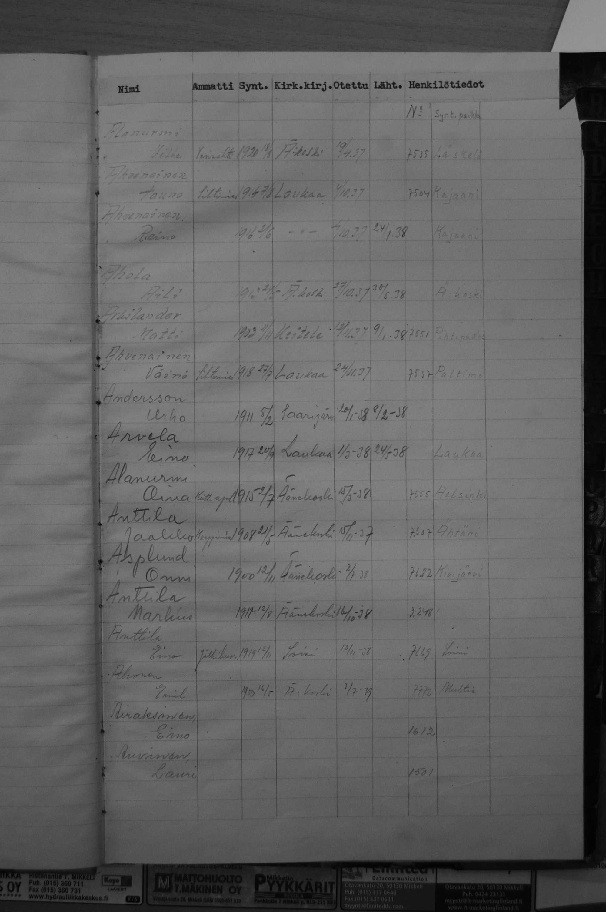 - Elinkeinoelämän keskusarkisto ELKA, Äänekosken sulfiitin työntekijät 1937-1939