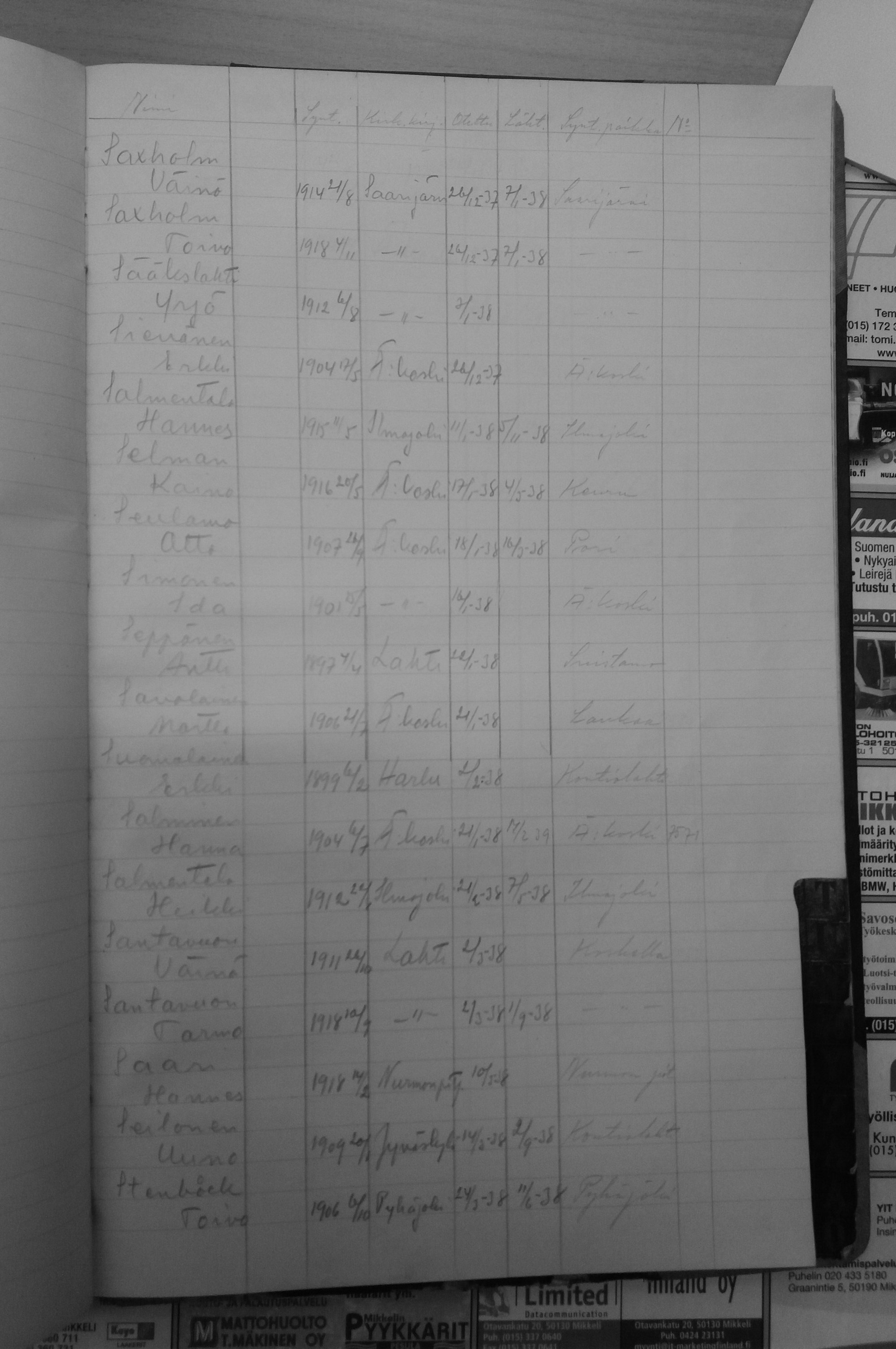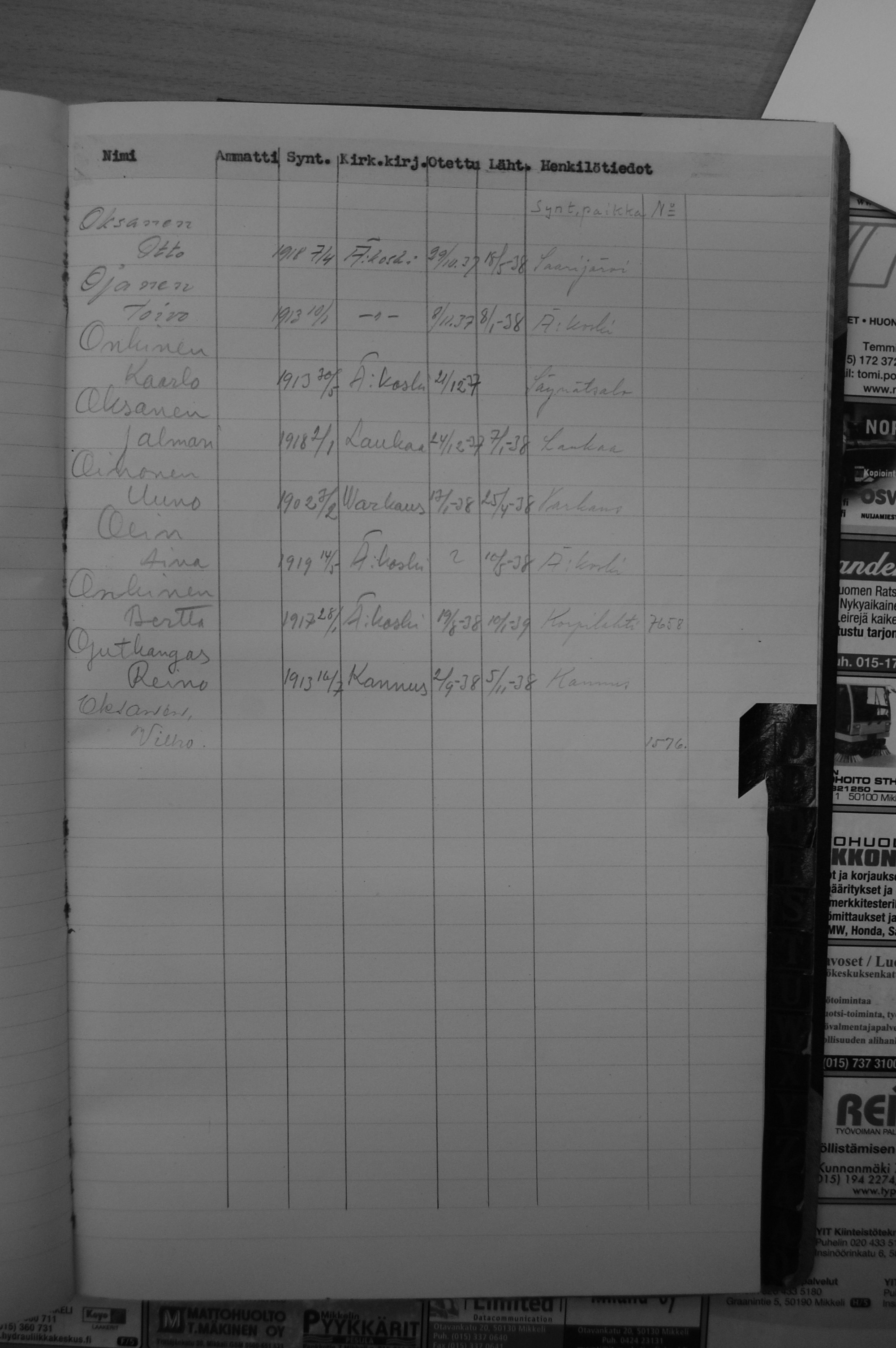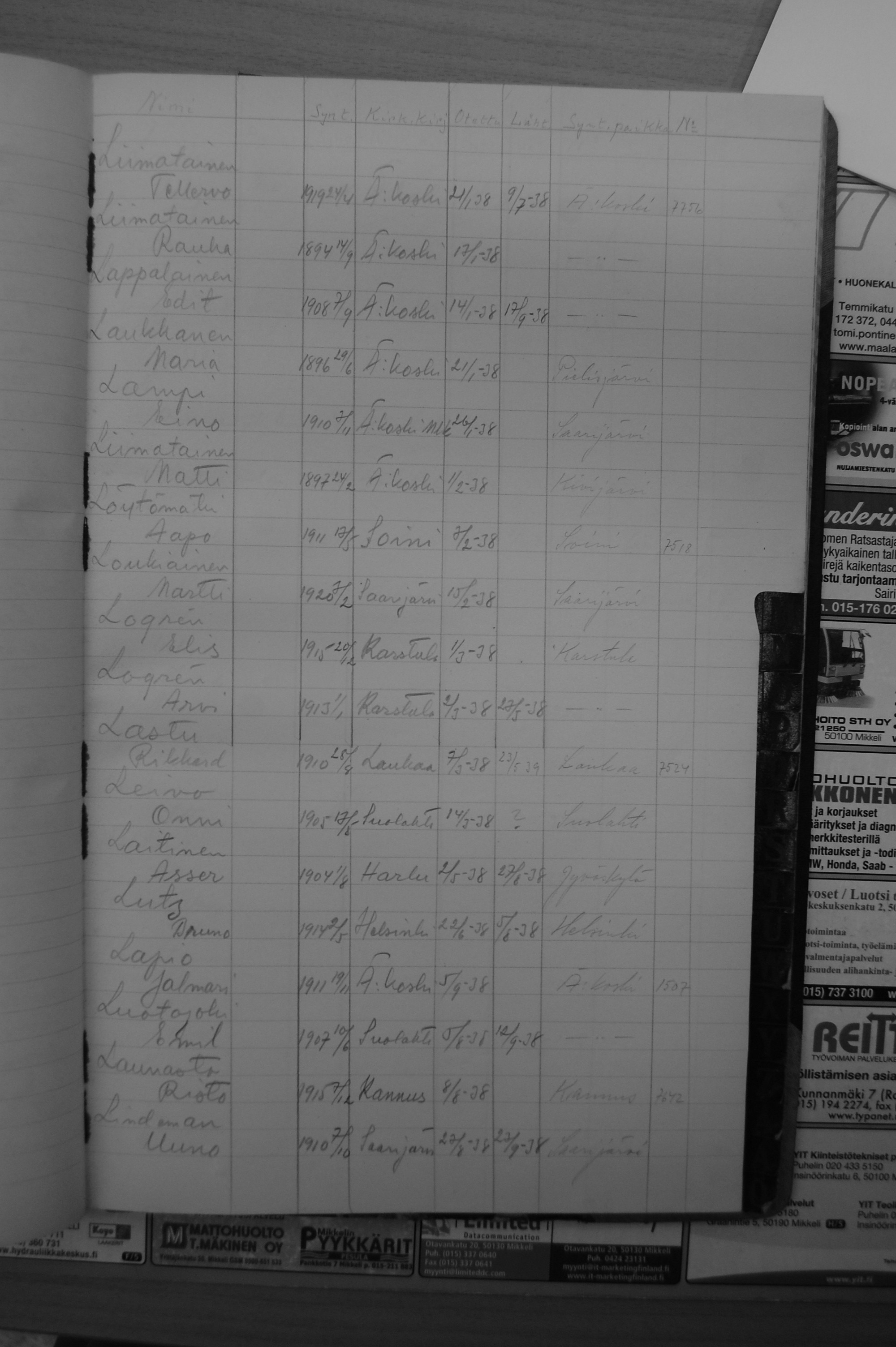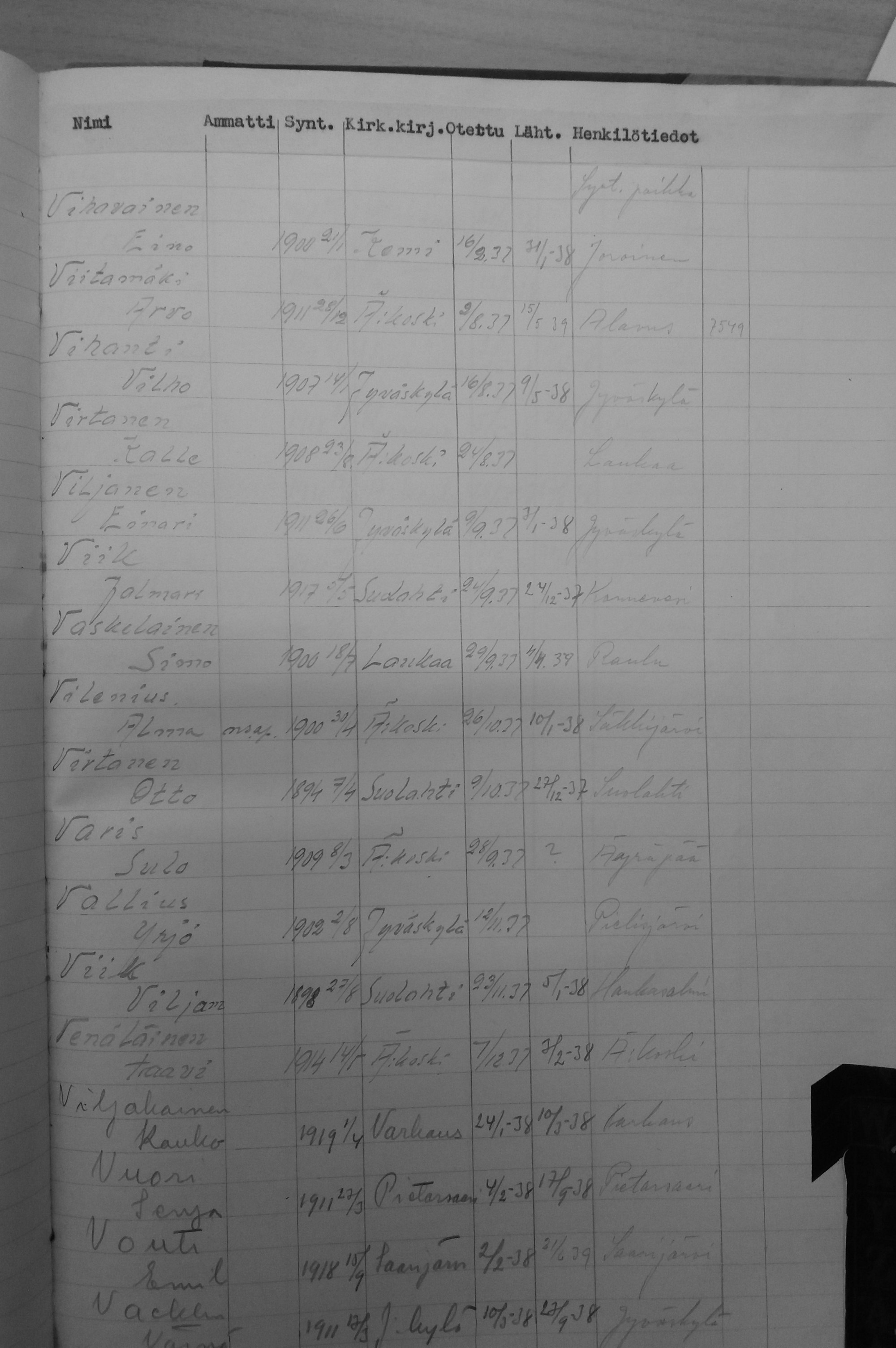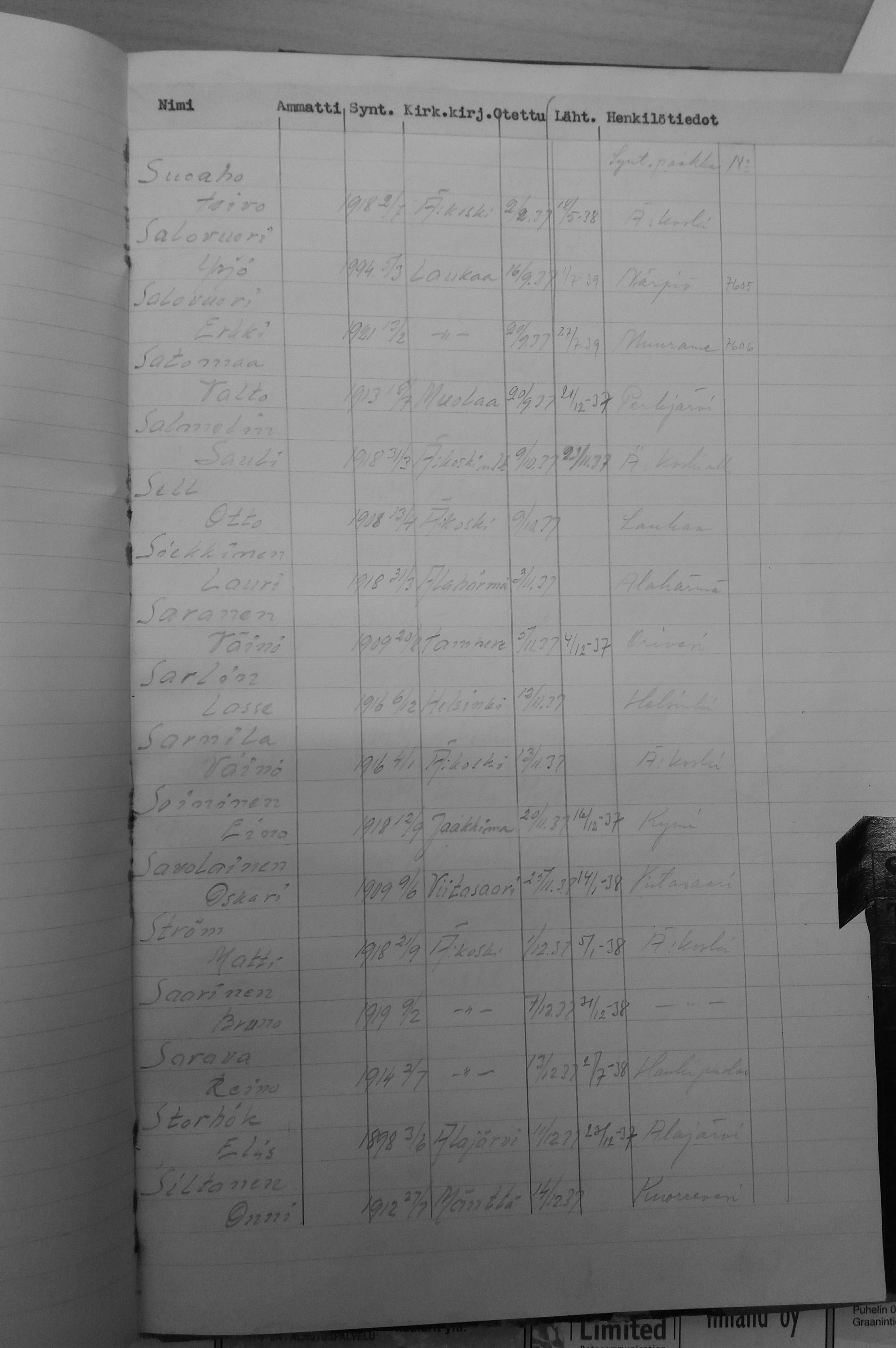 Alla olevassa luettelossa on sulfiitin vuosien 1936-1939 alkuperäisten työntekijäluetteloiden kopiot. Jokainen listan kuvake avautuu omaan luettelosivuunsa. Selaimeen linkistä avautuvaa kuvaa voi suurentaa luettavuuden parantamiseksi. Esimerkiksi Firefoxissa sen voi tehdä helposti viemällä hiiri kuvan päälle ja painamalla sen vasenta näppäintä. Toinen tapa on painaa CTRL-näppäin pohjaan ja pyörittää rullahiiren pyörää.