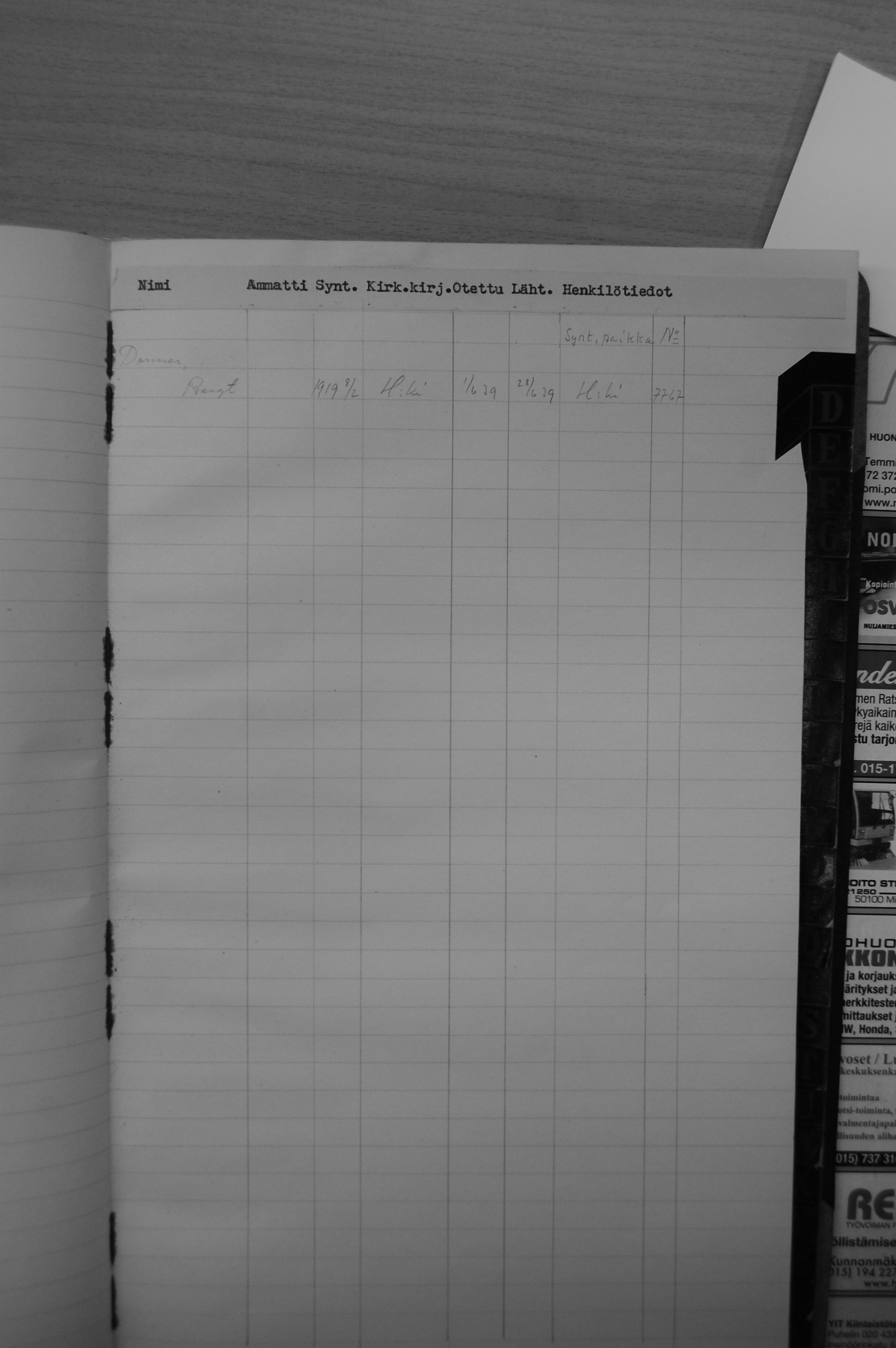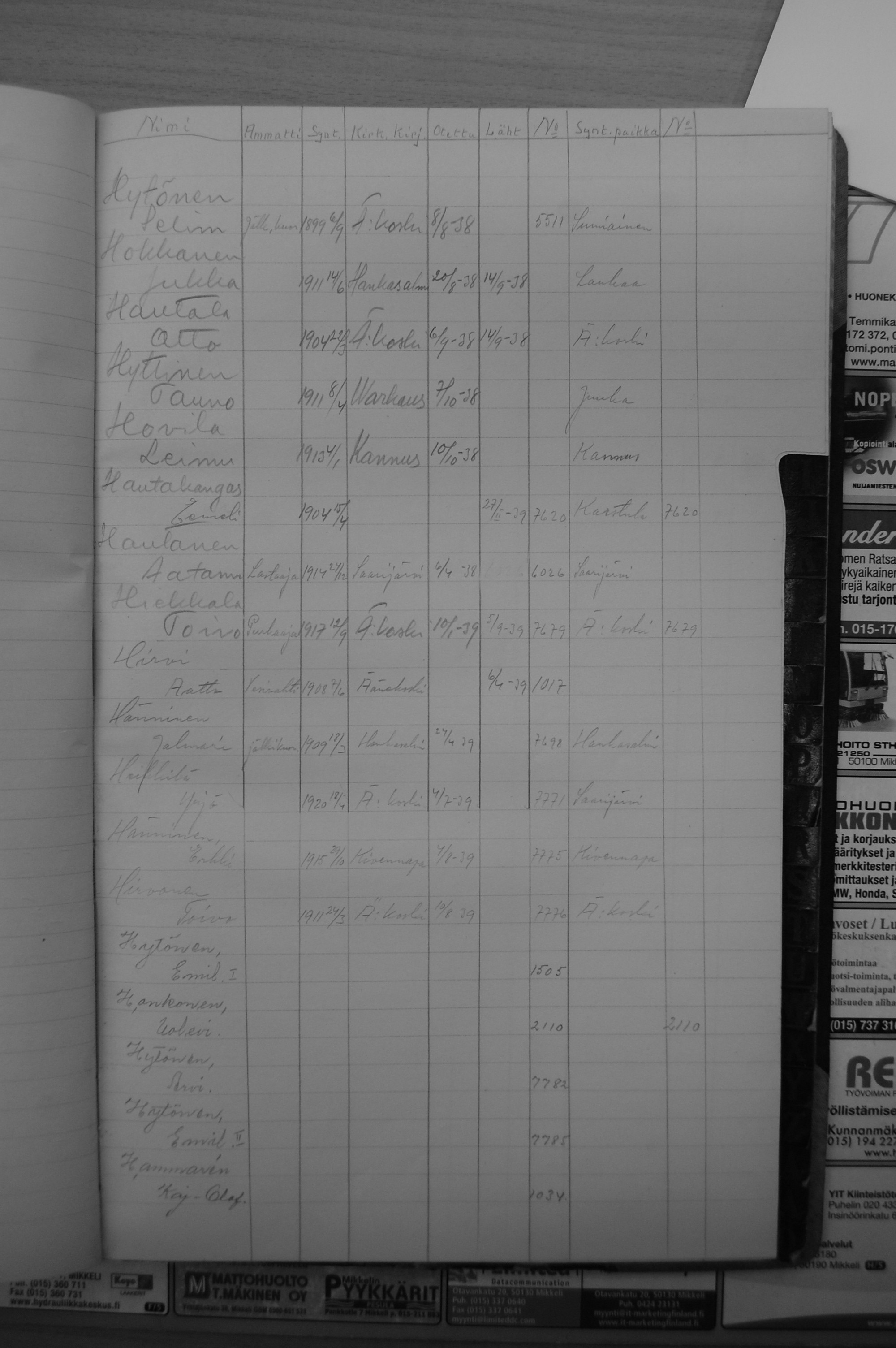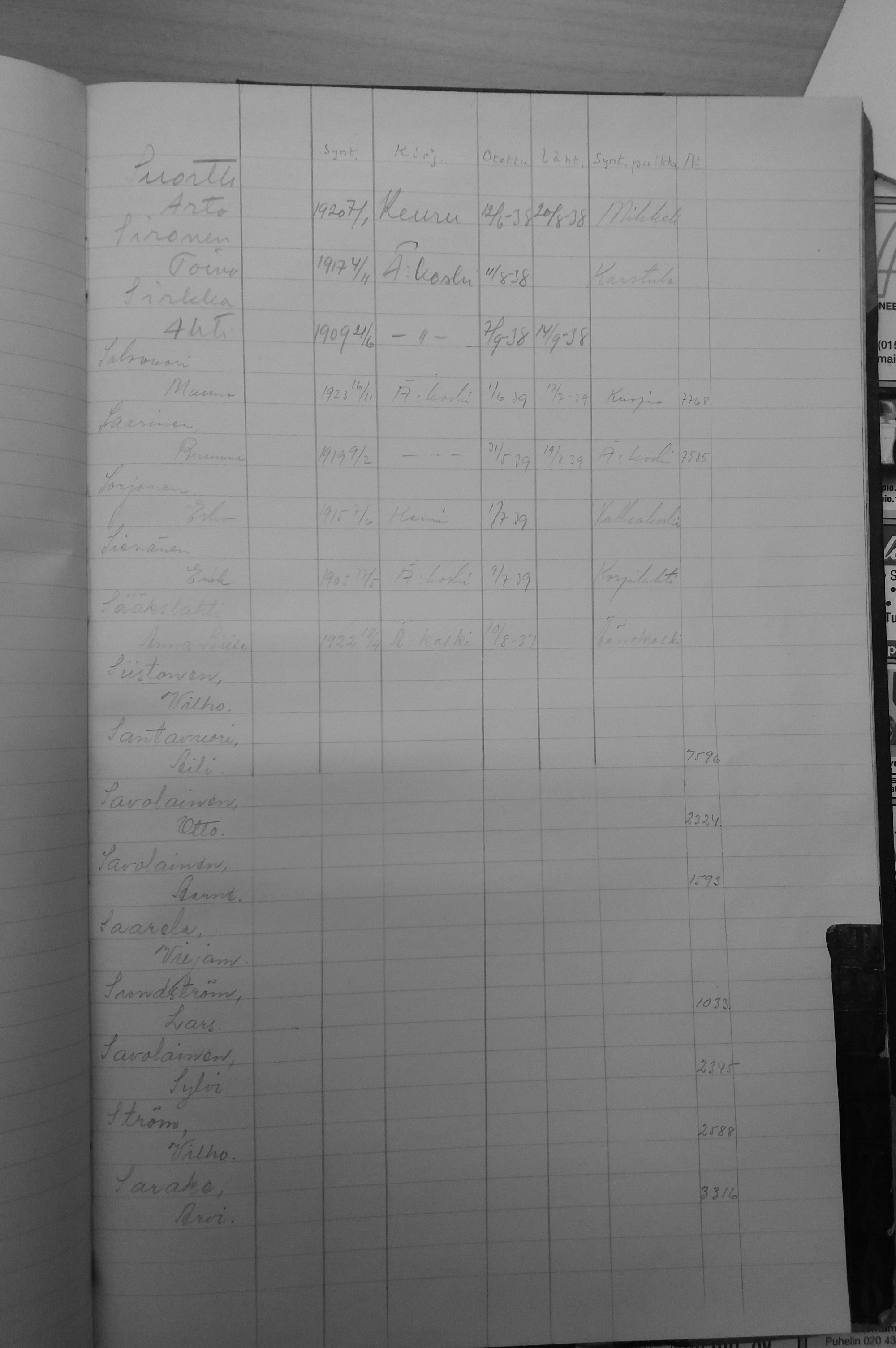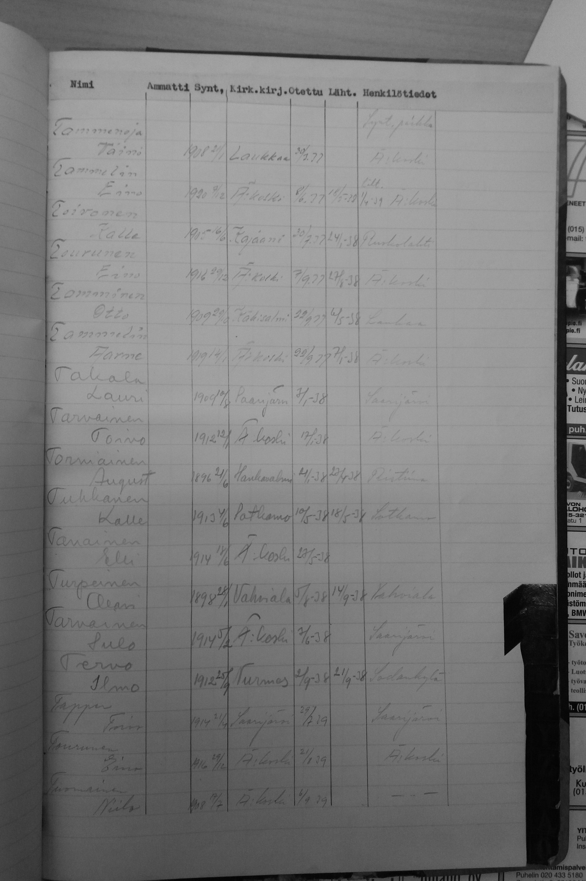Alla olevassa luettelossa on sulfiitin vuosien 1936-1939 alkuperäisten työntekijäluetteloiden kopiot. Jokainen listan kuvake avautuu omaan luettelosivuunsa. Selaimeen linkistä avautuvaa kuvaa voi suurentaa luettavuuden parantamiseksi. Esimerkiksi Firefoxissa sen voi tehdä helposti viemällä hiiri kuvan päälle ja painamalla sen vasenta näppäintä. Toinen tapa on painaa CTRL-näppäin pohjaan ja pyörittää rullahiiren pyörää.