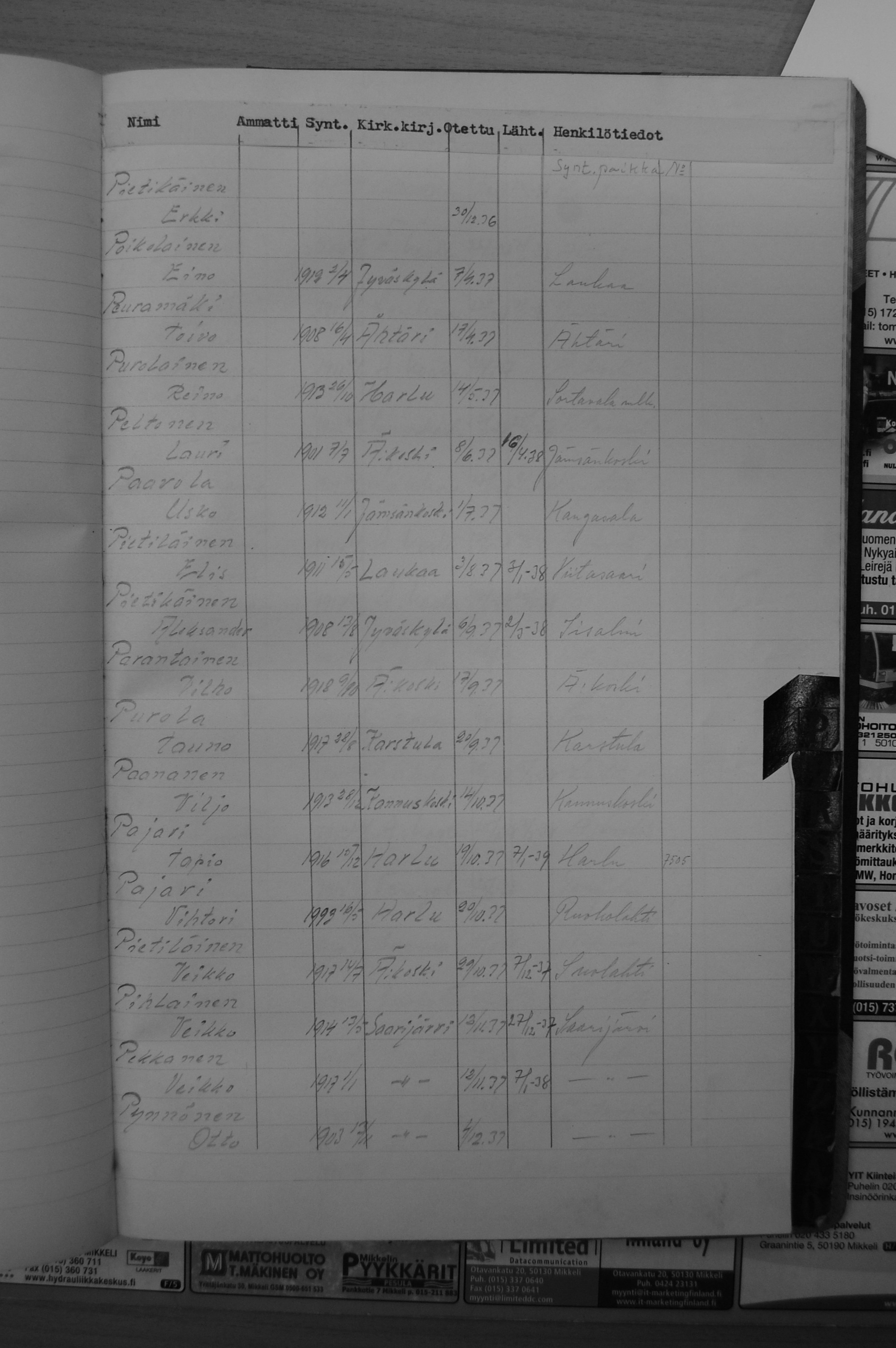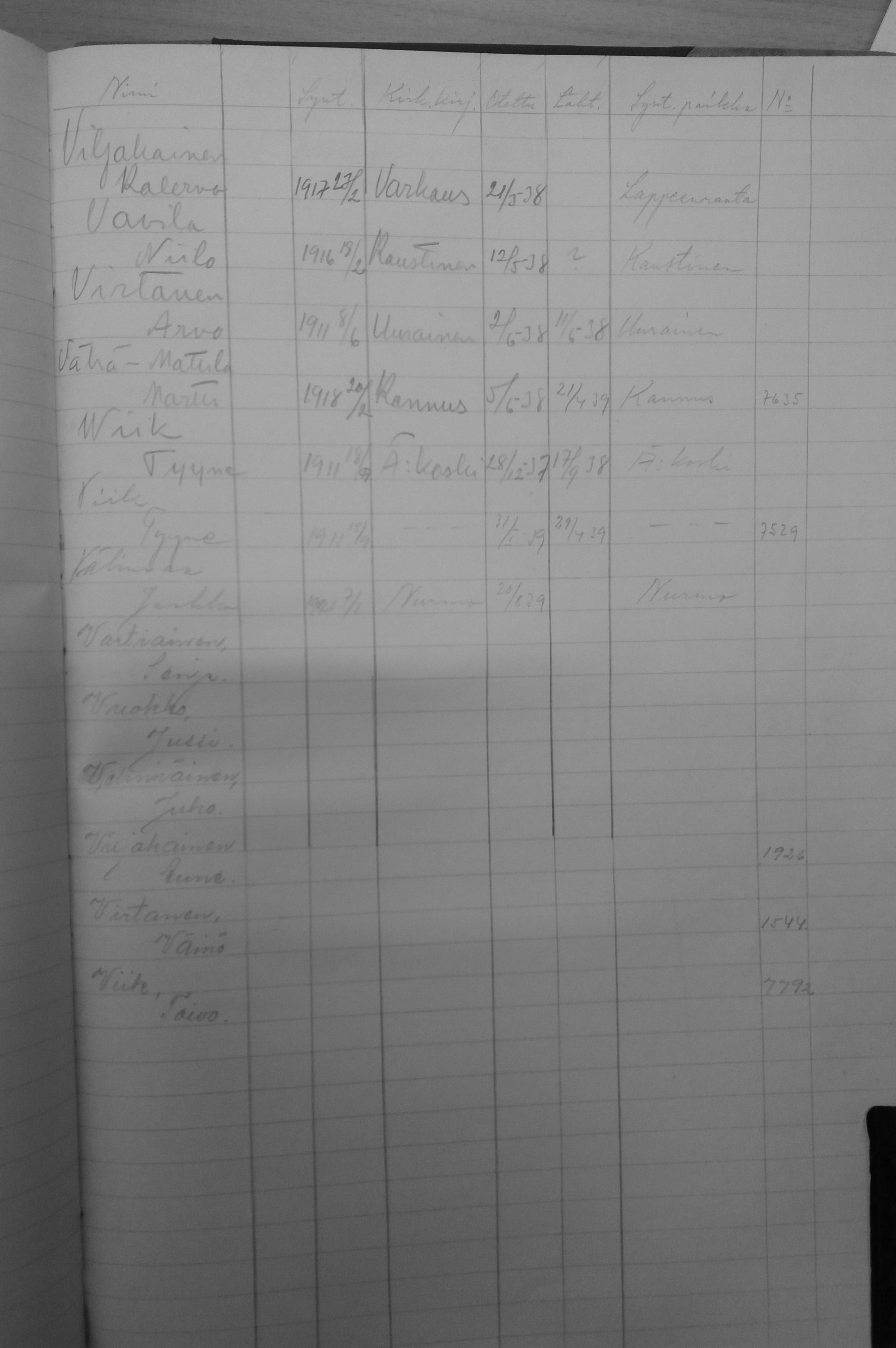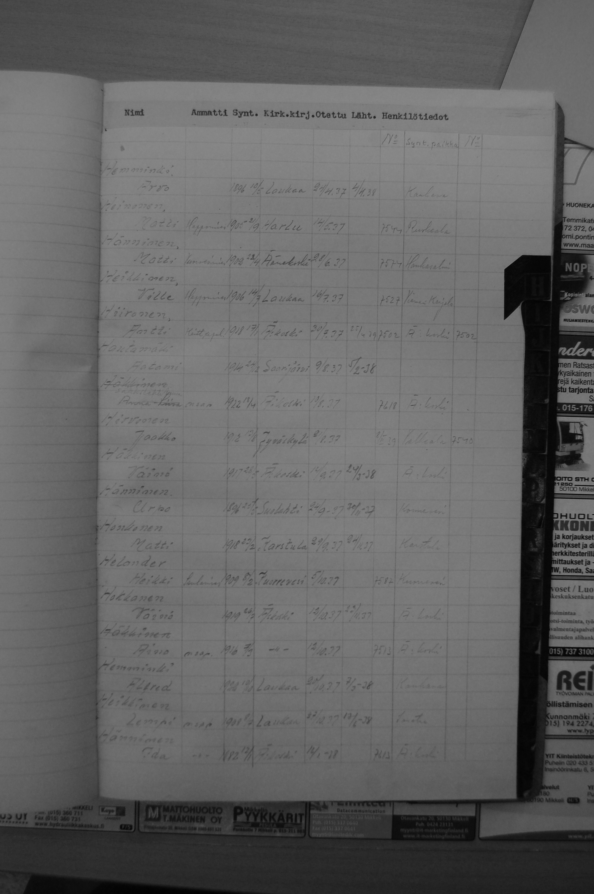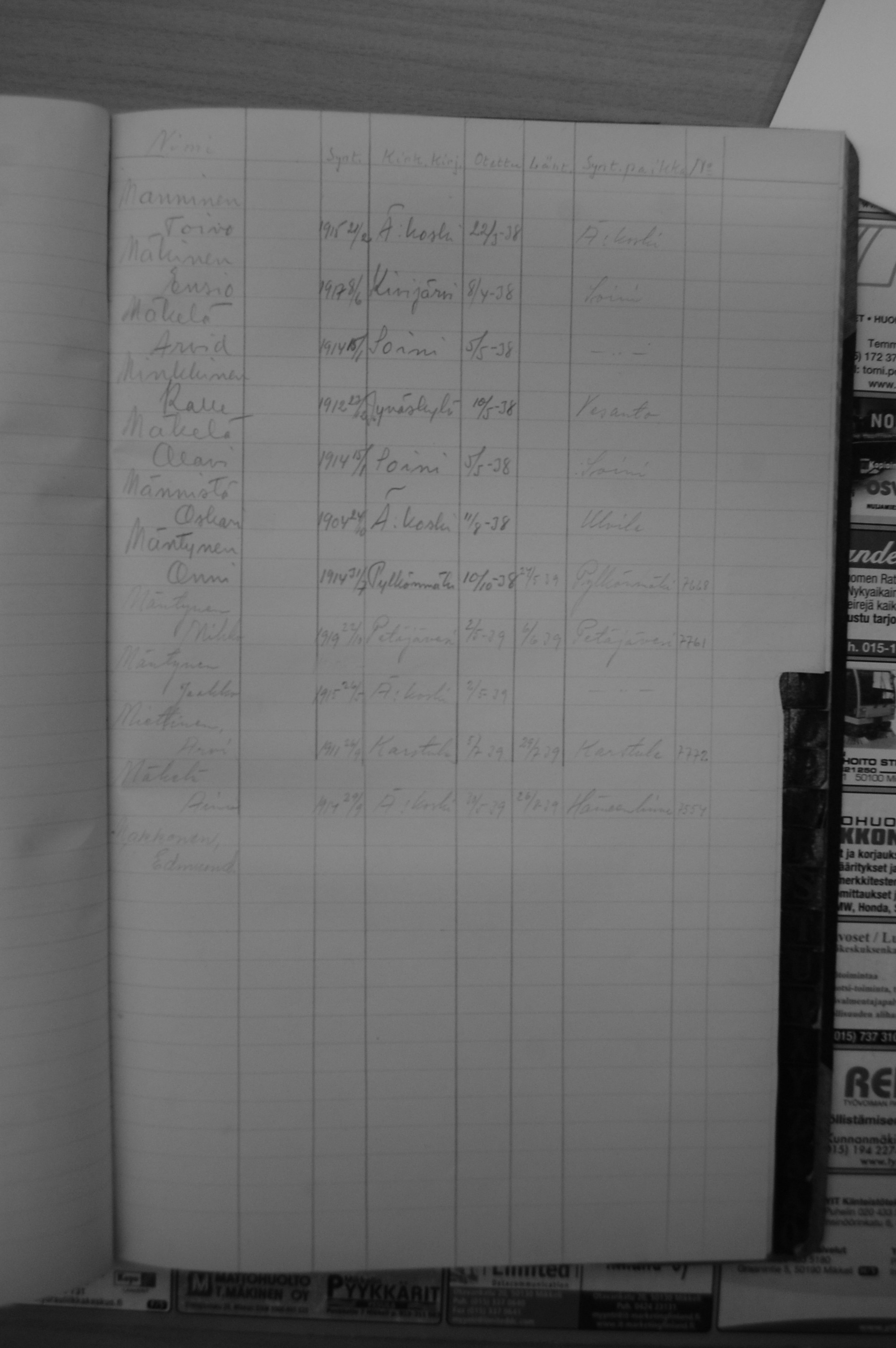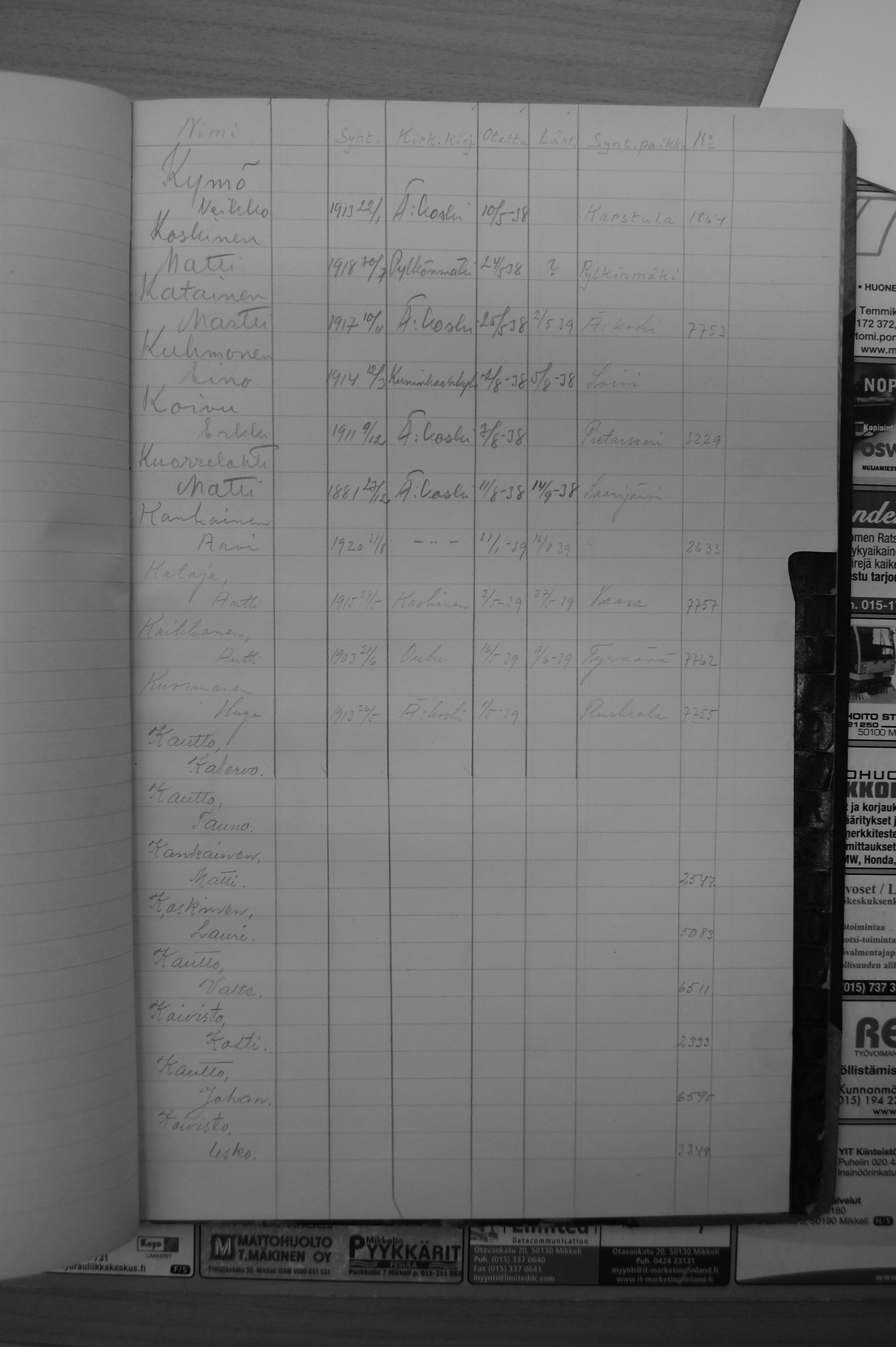 Alla olevassa luettelossa on sulfiitin vuosien 1936-1939 alkuperäisten työntekijäluetteloiden kopiot. Jokainen listan kuvake avautuu omaan luettelosivuunsa. Selaimeen linkistä avautuvaa kuvaa voi suurentaa luettavuuden parantamiseksi. Esimerkiksi Firefoxissa sen voi tehdä helposti viemällä hiiri kuvan päälle ja painamalla sen vasenta näppäintä. Toinen tapa on painaa CTRL-näppäin pohjaan ja pyörittää rullahiiren pyörää.