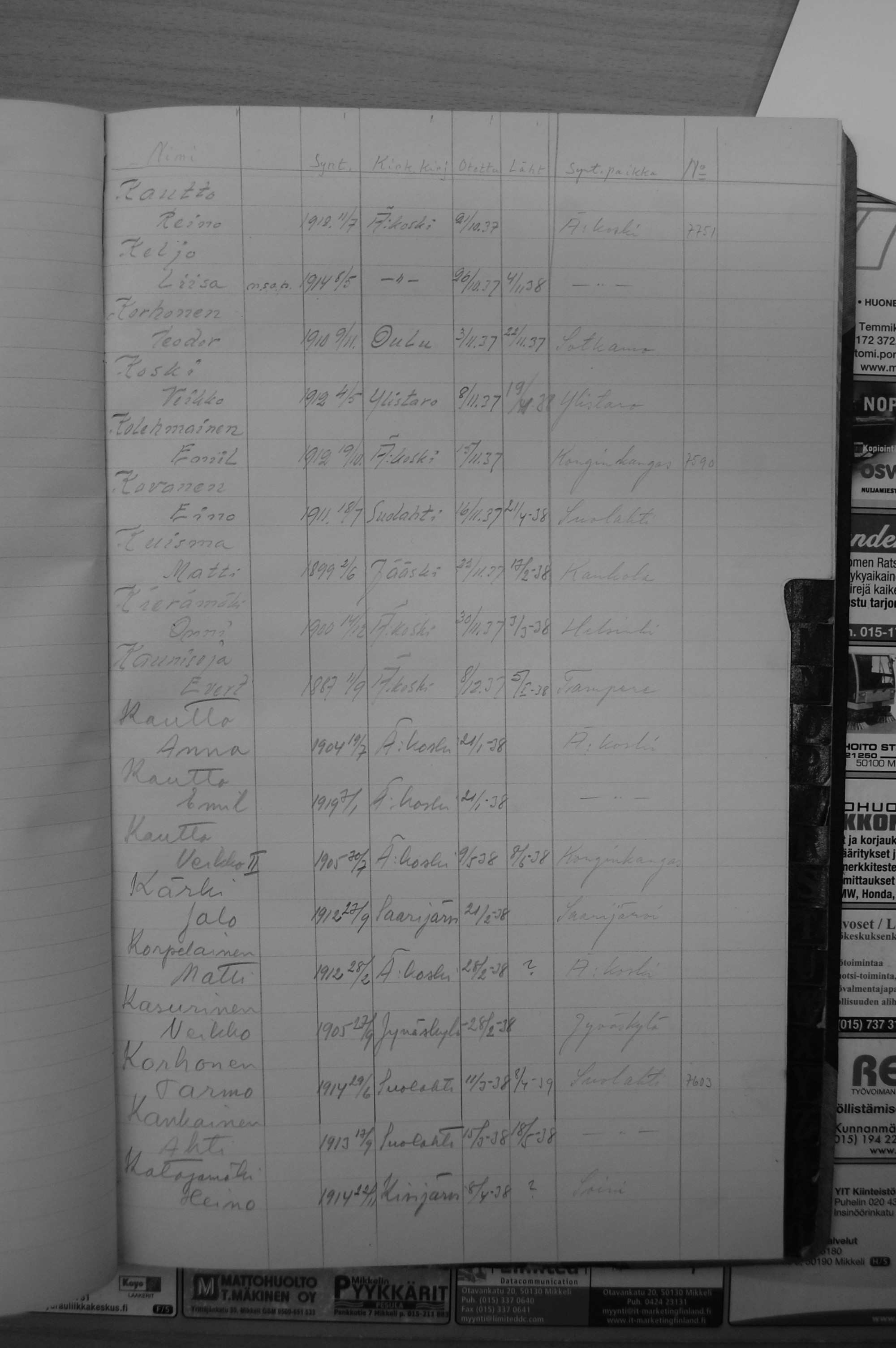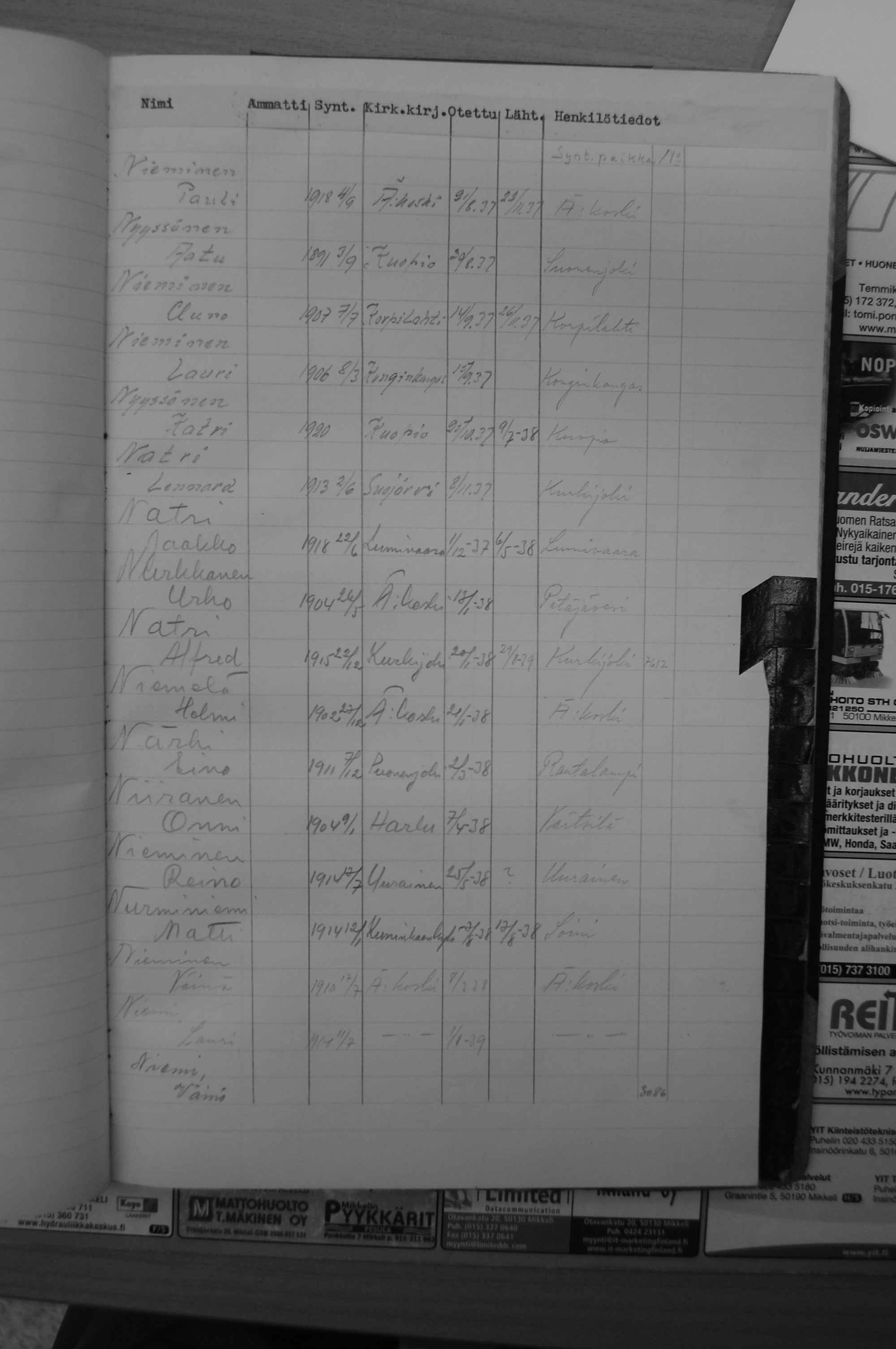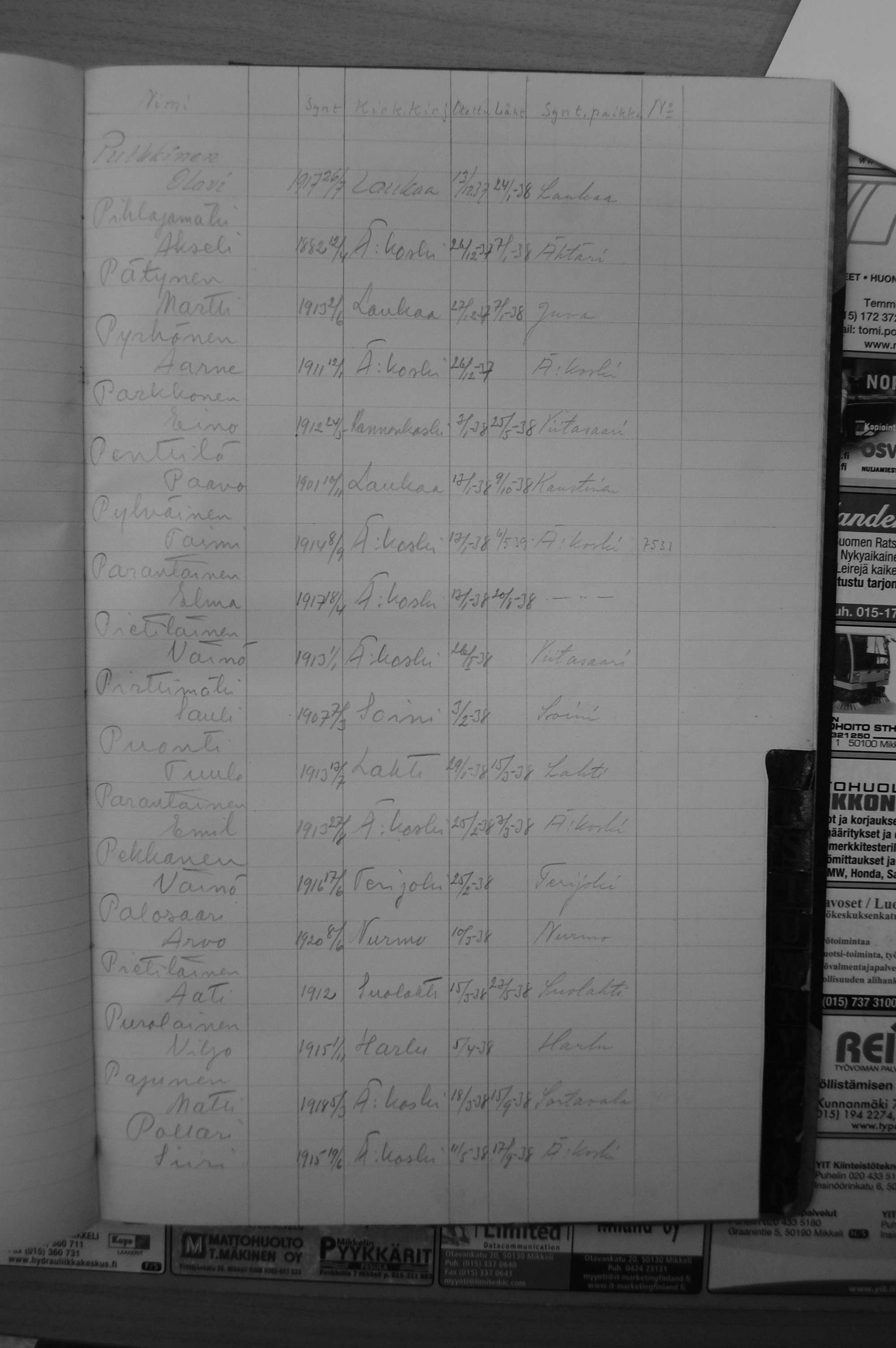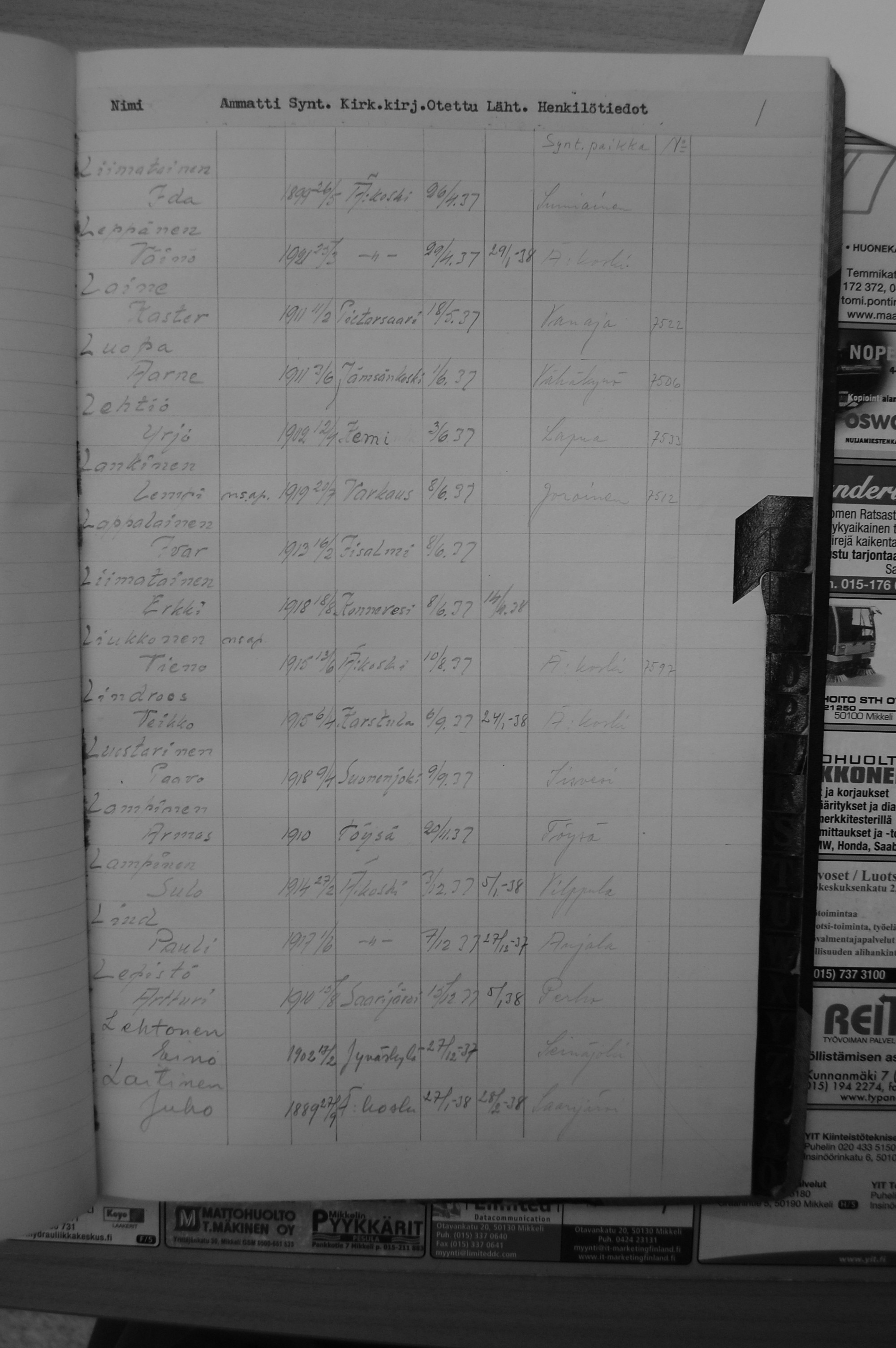 Alla olevassa luettelossa on sulfiitin vuosien 1936-1939 alkuperäisten työntekijäluetteloiden kopiot. Jokainen listan kuvake avautuu omaan luettelosivuunsa. Selaimeen linkistä avautuvaa kuvaa voi suurentaa luettavuuden parantamiseksi. Esimerkiksi Firefoxissa sen voi tehdä helposti viemällä hiiri kuvan päälle ja painamalla sen vasenta näppäintä. Toinen tapa on painaa CTRL-näppäin pohjaan ja pyörittää rullahiiren pyörää.