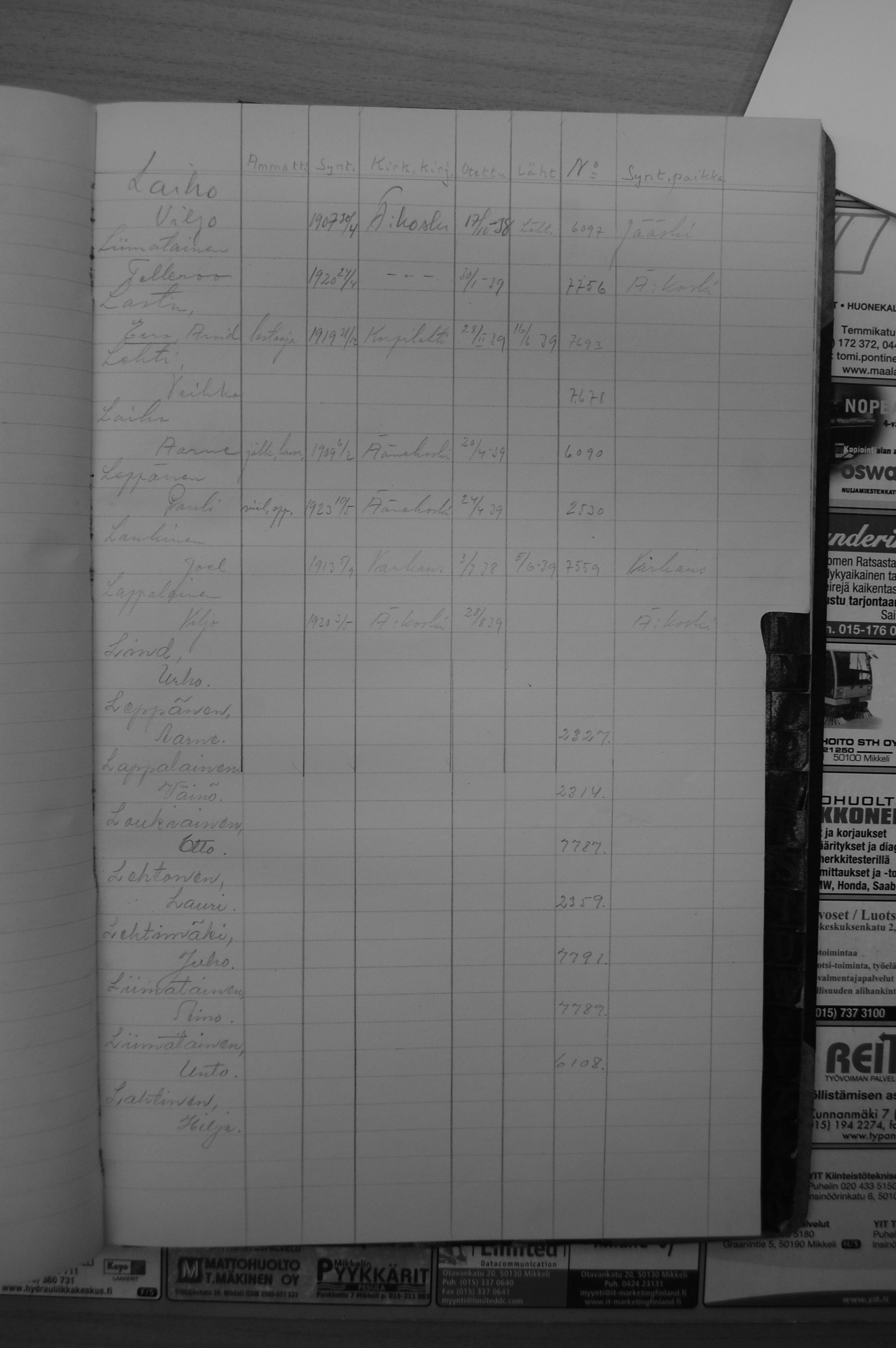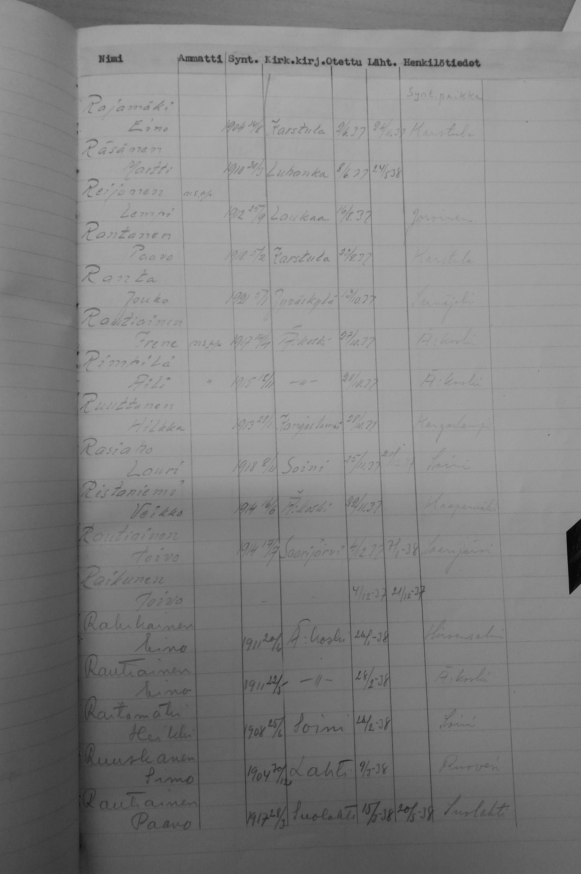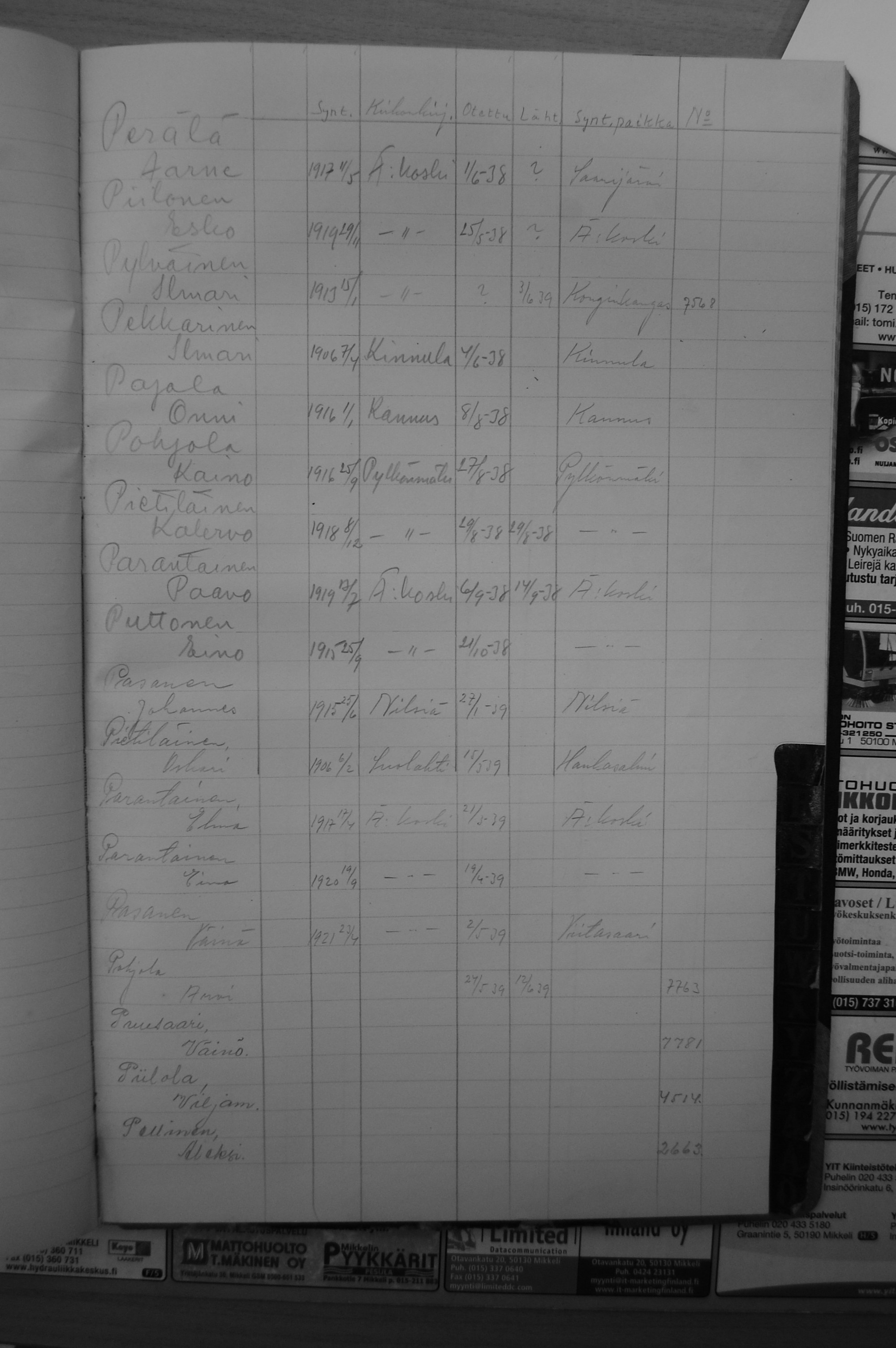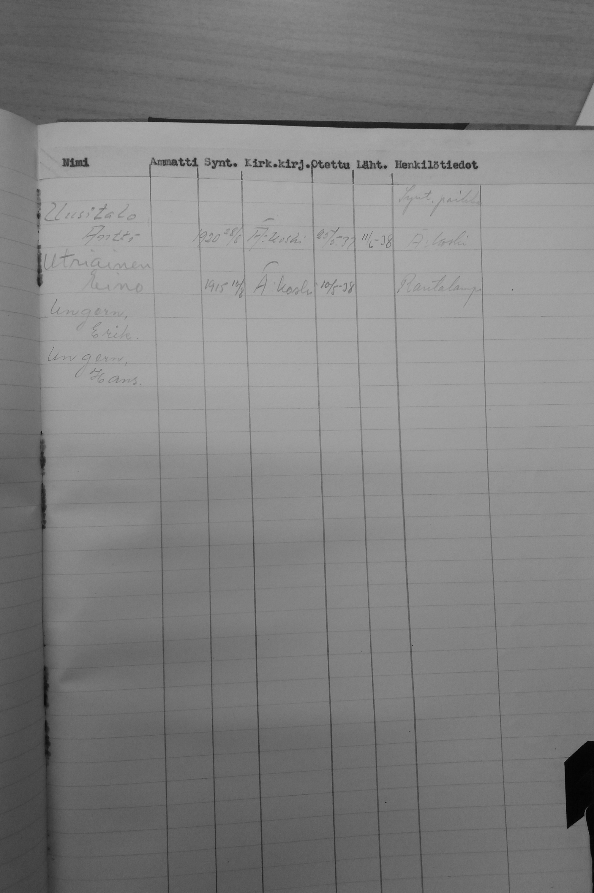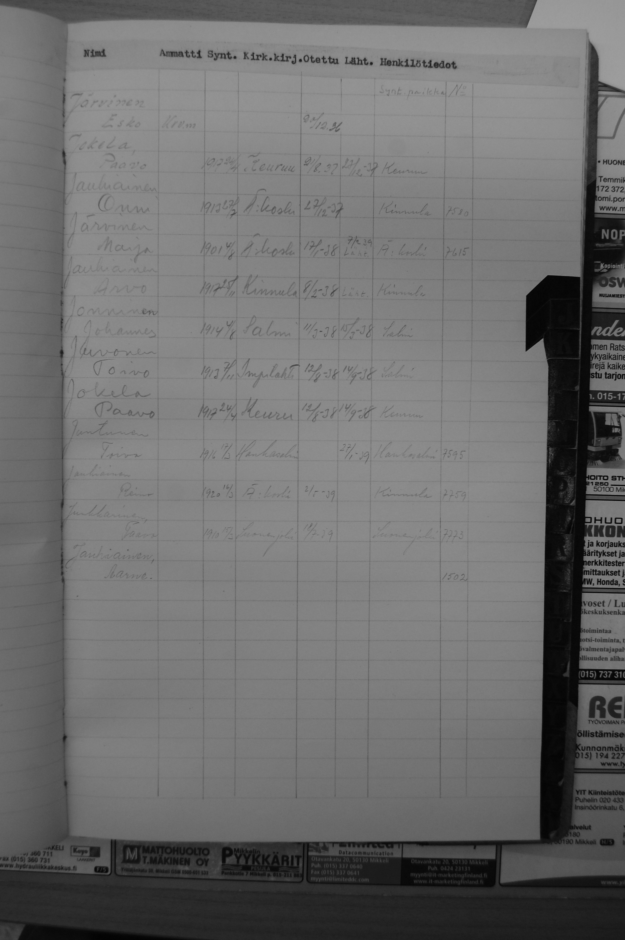 Alla olevassa luettelossa on sulfiitin vuosien 1936-1939 alkuperäisten työntekijäluetteloiden kopiot. Jokainen listan kuvake avautuu omaan luettelosivuunsa. Selaimeen linkistä avautuvaa kuvaa voi suurentaa luettavuuden parantamiseksi. Esimerkiksi Firefoxissa sen voi tehdä helposti viemällä hiiri kuvan päälle ja painamalla sen vasenta näppäintä. Toinen tapa on painaa CTRL-näppäin pohjaan ja pyörittää rullahiiren pyörää.