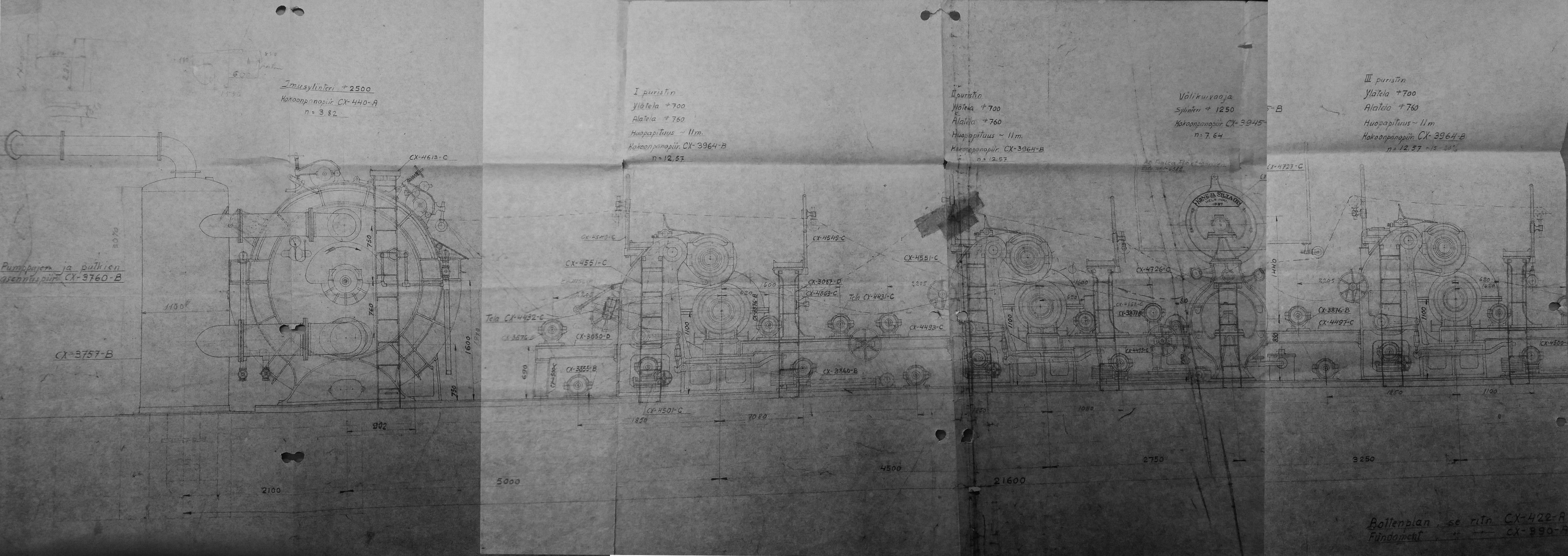 Alla olevassa kuvassa on sulfiitin prässin sijoitus- ja rakennekuva vuodelta 1936. Alkuperäisen sinikopiokuvan mitat ovat 3000 * 2100 px ja koko 1,6 Mt.