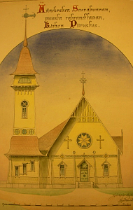Allekirjoittanut sitoutuu laatimaan Äänekosken kyläkuntalaisille korutonta maakirkkoa varten luonnospiirustukset, jotka sisältävät yksinkertaisemman, vähäisessä mittakaavassa tehdyn kuvan pohjapiirustuksesta, pää- ja sivufasadista ja läpileikkauksesta, joidenka perusteella sitten pääpiirustukset laaditaan. Tästä luonnoksesta on minulle tuleva palkiota 200.