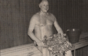 Kaikilla oli omat saippuat ja jollakin jopa vamppu, sellainen halkaistu, jos satutte muistamaan tai tietämään. Kun oli paljon väkeä, oli myös paljon ääntä. Ei oltu kirkossa. Ylhäällä lauteilla ei kuitenkaan rupateltu: Vastat siellä puheli. Siel käv kova läiske toisinaan ja vielä siihen sekkaan joku huus, että löylyä. Siellä ol kovat kilpalöylyt toisinaan. Ukkojen kanssa ja niin naistenkin. Suolahden kanssa miteltiin paremmuudesta luonnollisesti saunomisessakin.