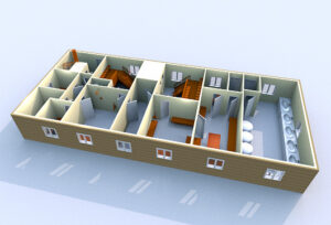 Kuhnamon sauna pohjoisesta etelän suuntaan.