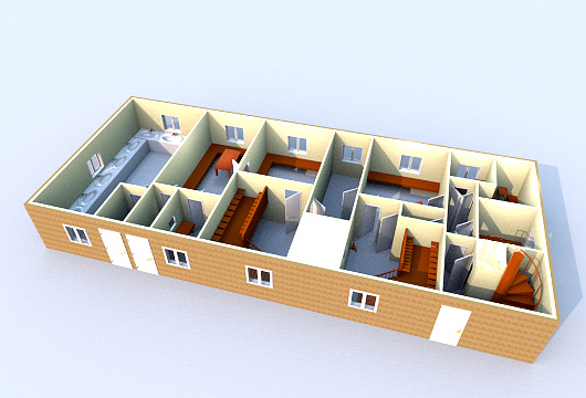 ikkunallisia ja yksi ikkunaton niiden välissä.