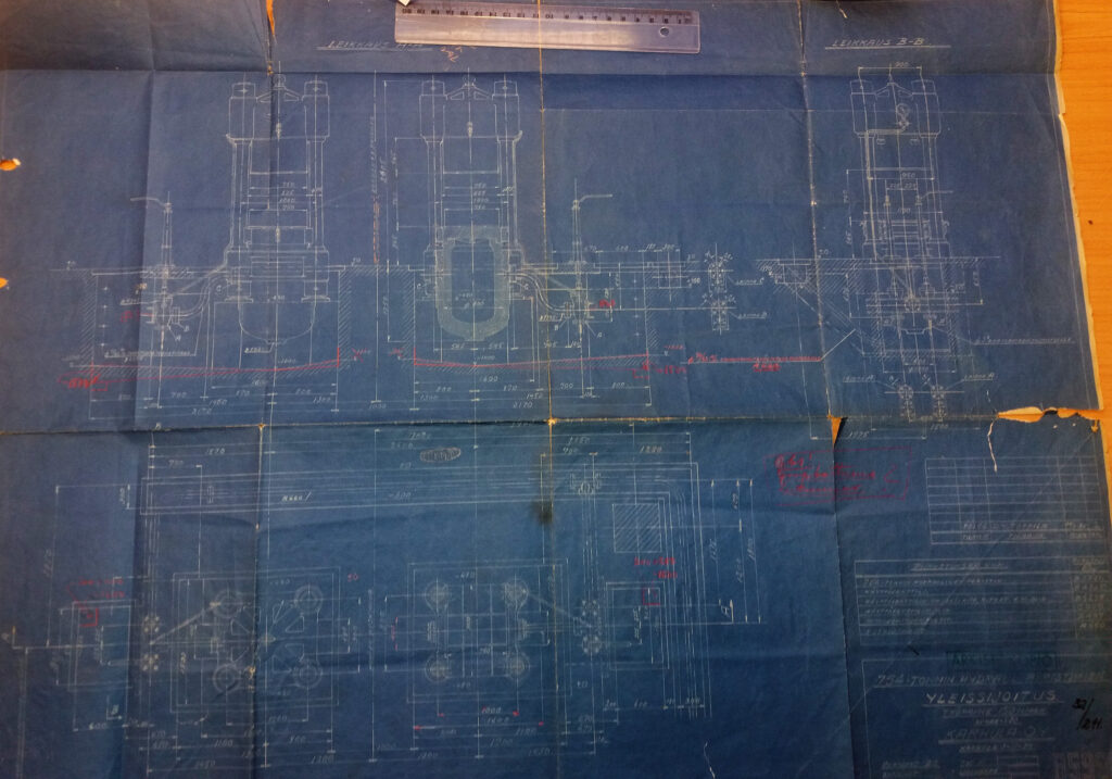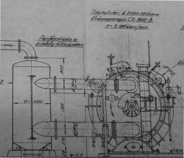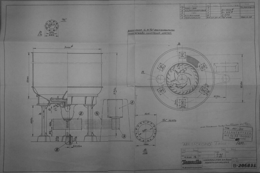 Alla olevassa vuodelta 1954 olevassa kuvassa on Hydrapulperin asennuspiirustus.