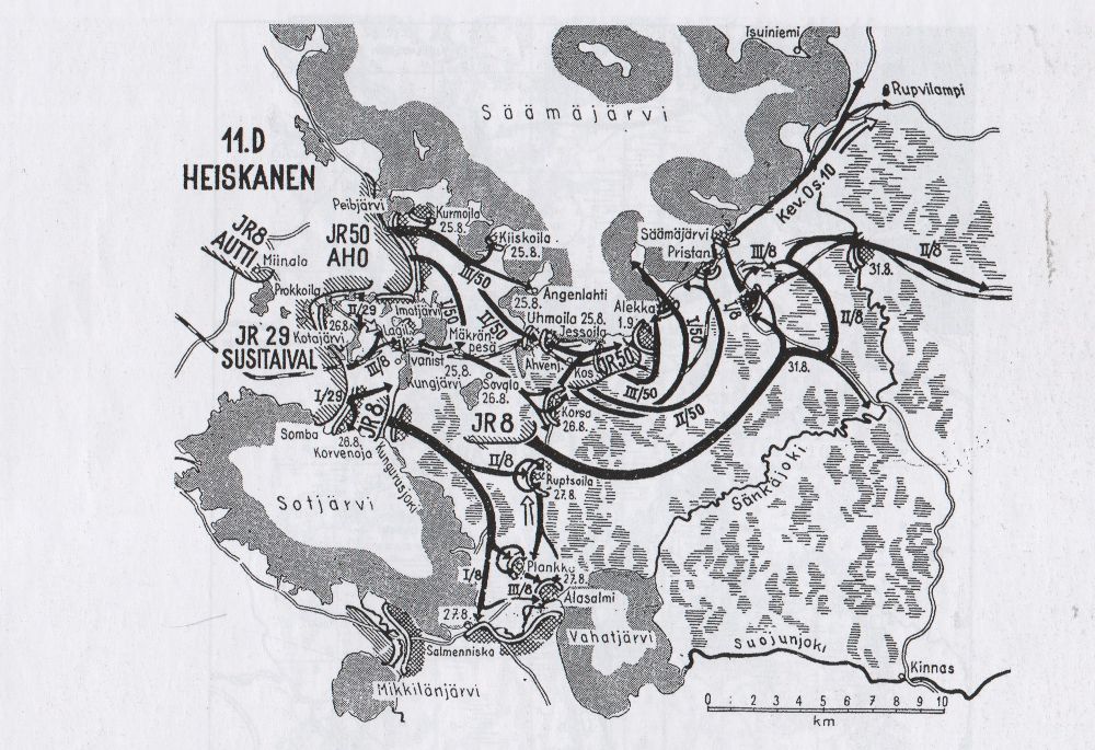 Pataljoonan komentaja piti 30.8.1941 klo 20.00 puhuttelun yksiköiden päälliköille. Käskyn mukaan III/JR50:n tehtävänä on sitoa vihollista tien suunnassa tarkoituksena painaa se Säämäjärveen. Tätä varmistaakseen pataljoona lähetti upseeripartion vahvennettuna jääkärijoukkueella tehtävänä tiedustella suojaisa siirtyminen ryhmitysmaastoon. Tarkoituksena oli päästä rautatien oikealla puolella olevan suon yli yön aikana hämärän suojassa.
