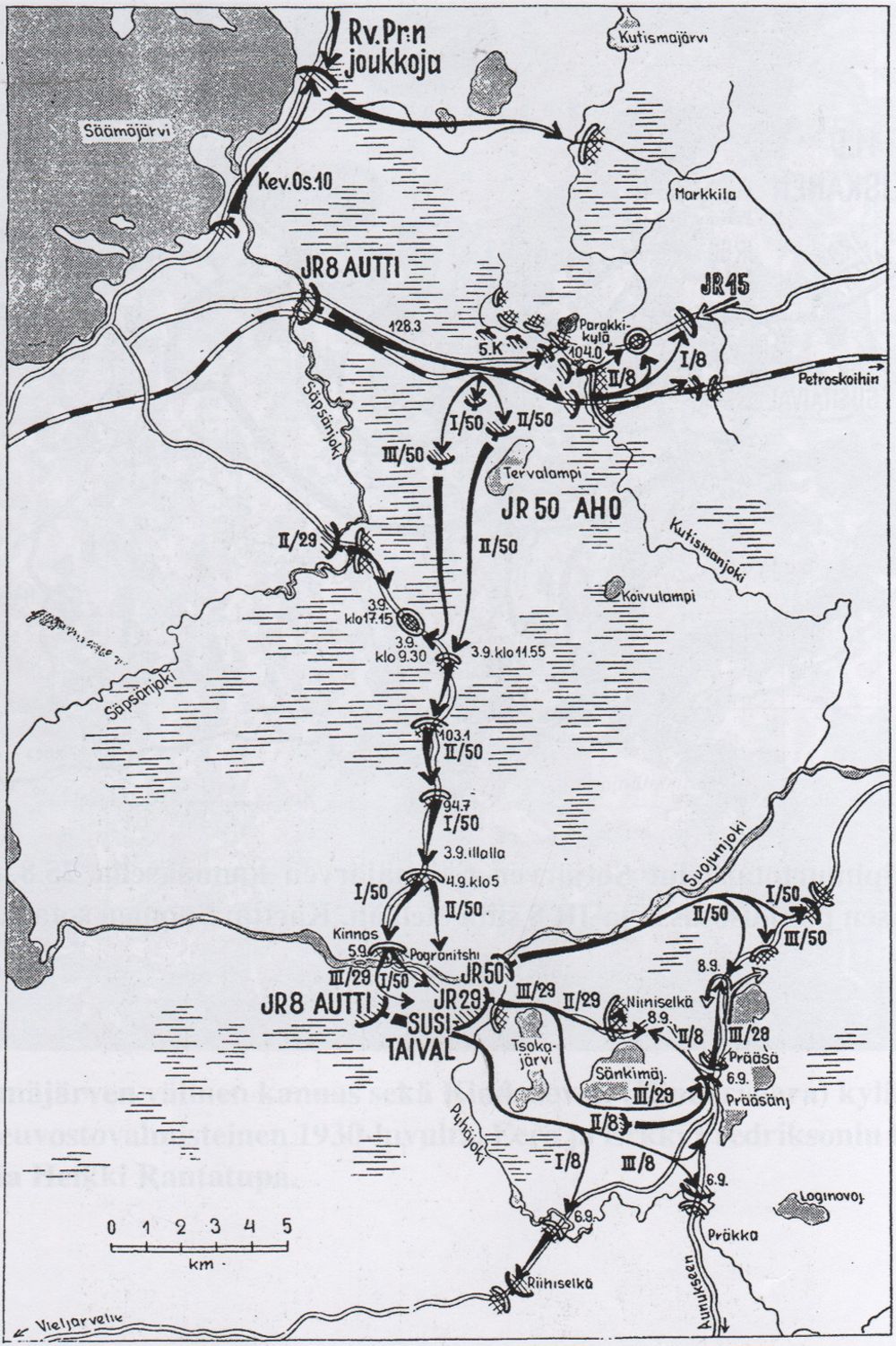 Joukkojen liikkeet Tervalampi-Kinnasraava-Prääsä alueella