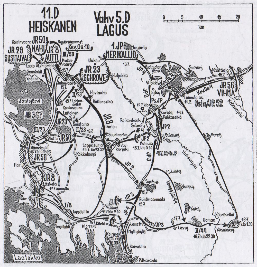 Joukkojen liikkeet Jänisjärven itä- ja eteläpuolella
